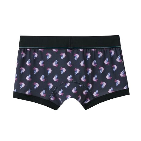 また上の浅い《ミニボクサー》、ボクサー部分の面積が小さいので、通常のボクサーブリーフに比べてヒップが小さく見えますし、足も長く見えます。