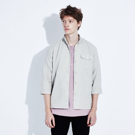 コットン リネン スタンドカラー シャツ