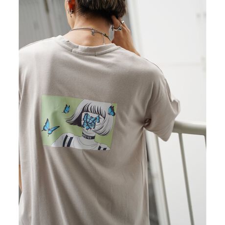 KisaバタフライイラストバックプリントTシャツ