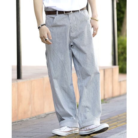 ヒッコリー ストライプ ワイド ペインターパンツ