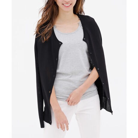 1枚でも、羽織りでも、肩掛けでも。フレキシブルに活躍するベーシックカーデ 夏とはいえ、冷房対策、日よけ対策に欠かせないベーシックなニットカーデ。1枚でプルオーバーとしても、ワンピやタンクの羽織りとしても、肩掛けして着こなしのアクセントとしても、とにかく使える1着。