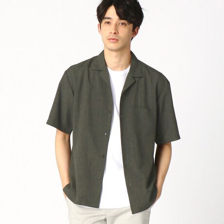 <br><br>《素材》<br>リネンのような清涼感を出した、ポリエステル素材を使用しています。<br>リネンに比べてシワになりにくく、通気性に富んだ素材。さらりとした肌触りが特徴です。<br><br>《デザイン・シルエット》<br>肩を落としたドロップショルダーの、オープンカラーシャツです。<br>衿は小さめに設定し、首元には新鮮な印象をプラス。<br>リラクシングなイメージのシルエットですが、大きずぎないサイズ感で、幅広い年齢層にもおすすめです。<br><br>《セットアップ》<br>同素材のパンツ (商品番号:47−54PT10−201)と合わせて、<br>セットアップとしてお召しいただけます。<br>※在庫がない場合もございますので、予めご了承くださいませ。