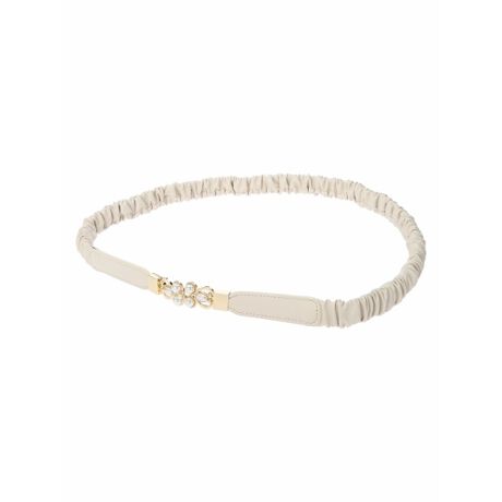 [型番:21221508872]上品に艶めくパールビーズを添えたバックルが洗練ムードを呼び込むベルト。くしゅっとシャーリングをきかせたゴム仕様なので、スタイリングにメリハリと表情をプラスしつつ、窮屈感のないストレスフリーな着用感を実現。フロントホックで簡単に着脱できるのも魅力的なポイントです。大きいサイズ/ぽっちゃり/ゆったり/LL 2L 3L 4L/体型カバー/プラスサイズ
