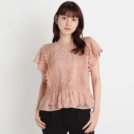 【S-LL】レース切り替えペプラムブラウス