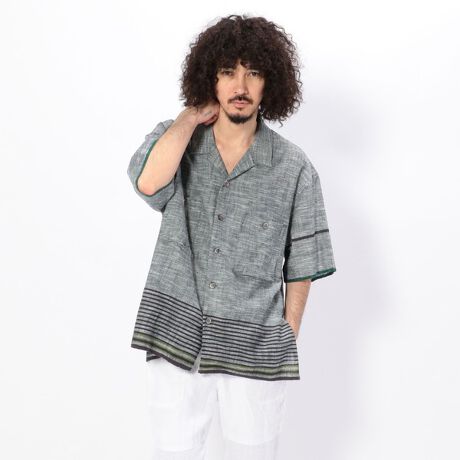 ムラのあるの生地感が特徴のカディ生地を使用した半袖シャツ。インド等の民族衣装などに用いられる薄手のコットン素材、”カディ”。独特なボーダープリントを施した裾がデザインの特徴になっております。春夏の必須アイテム、開襟シャツをベースにしているのも嬉しいところ。時期によってレイヤード等も楽しめ、一年を通して着用頂けるアイテムです。