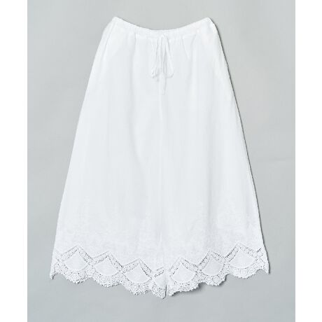 オリジナルボーダー刺繍レースのワイドパンツ。夏はなんといってもストレスフリーのワイドパンツが必需品です。しかもこんなに素敵でゴージャスなスカラップ刺繍がついていれば言う事なし!!おそろいのマスクと一緒に 今年らしいお洒落を楽しみましょう。