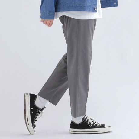 足長効果抜群のアンクルテーパードパンツで、程よいフィット感が特徴。