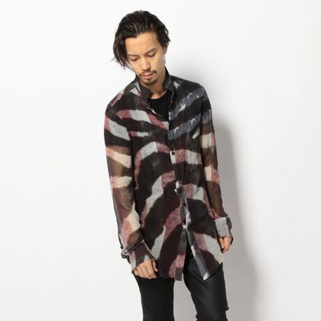 IF SIX WAS NINEの定番「タキシードシャツ」シリーズゼブラ柄とアメリカの星条旗を重ねて作られた柄になります。透け感のあるシルク素材で、高級感漂う一着です。袖口がカフスボタンでブランドアイコンの蛇とスカルで作られています。インパクトあり、IFらしいデザインになります。IF SIX WAS NINE/イフ シックス ワズ ナイン独自の世界観で創り出されるオリジナルデザイン世界的に有名なアーティストの衣装を手掛けたり、国内外のVIPに広く愛されるブランド