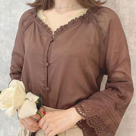 パンチングレース使いベルスリーブブラウス