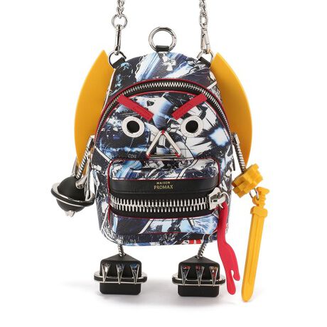 今シーズンは”VILLAIN SQUAD”シリーズから、アクション映画や日本の漫画、宇宙、 70年代のパンクロックをテーマにした限定版が登場。こちらは、ベースに漫画が描かれているデザイン。デザインの羽部分は、取り外しが可能です。さまざまな技巧を施した金属や高品質のレザー、Coated Canvas(コットンにビニール加工した物)といった異素材を組み合わせハンドクラフトで作られています。付属のスタイリッシュなチェーンを使えば、ショルダー バッグにもバッグパックにも簡単にすることができ、その日のスタイルに合わせた使い方が可能です。MAISON PROMAX/メゾンプロマックス1970年代よりバッグパックを製作してきた長く愛されているブランド。アートやカルチャー、ハイファッション、そして製作における並外れたノウハウを持つブランドとして、世界的にも知られるバッグパックメーカーの1つ。基本、レザーやスエード・スタッズなどを組み合わせたデザインが特徴的で全てハンドメイドで制作しています。1970年代にパリにて創業、類稀なる素材をもとに、常に作品への美しさを追求することで、タイムレスで時代を問わないエレガントなアイテムを生み出し、クリエーションの象徴的ブランドです。