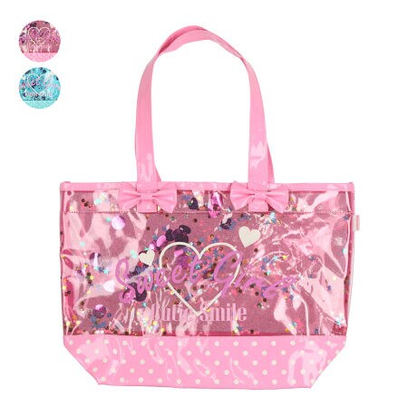 [型番:B35621]毎年人気のプールバック、プールバッグ。スイミング、水泳教室、プール、海水浴などなど夏には大活躍のアイテム。女の子が大好きなキラキララメ入り!しっかりまち付きで普段使いしても可愛いアイテム。