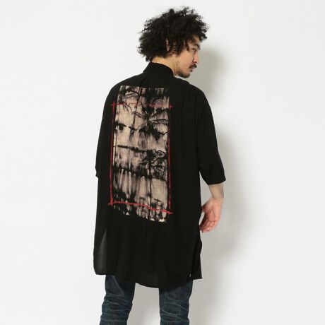 ROYAL FLASH 別注商品ルーズシルエットのシャツの背中にパーム柄を乗せた別注アイテムになります。バックのパームプリントをKMRiiらしくアレンジして赤縁で縁取ったオリジナルプリント。一枚でもロングスリーブカットソーと重ねても◎さらっとした素材なので、夏の羽織りにも使えます!KMRii[ケムリ] 2000年にLui Onozaki氏によりブランド設立。 世界中を旅しアンティークや民族美術などにインスパイアされたデザイナーLui氏が厳選された素材を用いてフルハンドメイドで製作するブランド。 インダストリアル(工業的)な雰囲気をレザーへ落とし込む手法を用い世界中を旅して得たインスピレーションを表現している。