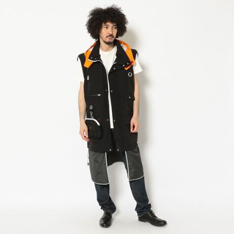 ライナーが極端に長くなっているアウトドアベスト。ライナー取り外し可能。撥水や豊富なポケットなどとても機能的で、また着こなしにアクセントを付けてくれるアイテムです。コーディネイトを楽しんで頂ける一着です。BODYSONG./ボディソングボディソング(bodysong.)は、日本のファッションブランド。デザイナーは青木俊典(Shunsuke Aoki)。『インプロビゼーション(即興)』をキーワードとし、服に限らず空間表現やオブジェ等に反映させる。ミュージシャンへの衣装製作や、アーティストとのコラボレーションも積極的に行っている。2016年、日本のお笑いコンビ、オリエンタルラジオを中心に結成されたダンス&ボーカルユニットRADIO FISH「パーフェクトヒューマン(PERFECT HUMAN)」のメンバー衣装を担当。ほかにも、乃木坂46 13thシングルのカップリング楽曲『ポピパッパパー』のダンス衣装を担当していた。