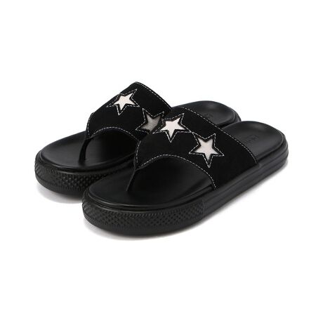 ラフにオシャレを楽しめるサンダルです☆CV サンダルのパターンアレンジモデル。90年代に発売されたトングサンダルをアレンジ。シックなブラックスエードに、コンバースらしいポップな星モチーフがポイントになったデザイン。軽量でクッション性に優れたインジェクションE.V.A.ソールと、足なりに沿った圧縮E.V.A.フットベッドのオリジナル二重構造が快適な履き心地を実現。様々なスタイリングに合わせやすいブラック/ホワイトの1カラー展開。【CONVERSE / コンバース】マーキス・M・コンバースが設立したコンバース・ラバー・シュー・カンパニーが起源。コンバースの代表作である“オールスター”は1917年の誕生以来、そのスタイルは現在もほとんど変わることなく生産され続けられています。また、その他にもジャックパーセルやプロレザーなど長年愛され続け、スニーカー史に名を残す名作が揃っています。
