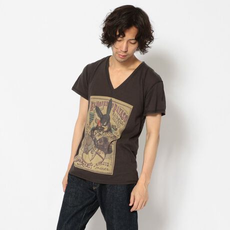 ROYAL FLASH別注商品アーカイブの柄を使ったTシャツ。タトゥーの入ったバニーガールがSHARE SPIRITらしいデザイン。SHARE SPIRIT/シェアースピリット シェアースピリット(SHARE SPIRIT)は片野光が立ち上げた日本のファッションブランド 。メンズ及びレディースウェアを展開。細部まで細かく作りこまれたコレクションは、日本国内はもちろん、海外でも強い人気を誇る。 デザイナーの方の光るが旅を通して感じたもの、見たもの、聞いたもの、文化、民族などからインスパイアされ、シェアースピリットのコレクションに反映させている。アンティーク、ヴィンテージ調のコレクションが特徴。