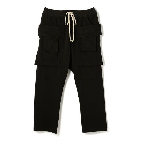 DRKSHDW褪せた色合いが魅力の一つの9分丈カーゴパンツです。腰回りのデザインされたバンドがモードの雰囲気を増しています。フロントのフラップポケットを小ぶりにする事でミニマル化を図り、ポケットを二重にする事で機能面でも注目したい一本です。フラップ部分の上部にもポケット口があります。ウエストはイージー仕様なのでストレスを軽減してくれます。9分丈なのでシューズとのバランスがとりやすい一本です。DRKSHDW(ダークシャドウ)は1997年にリック・オウエンスが自身の名を冠したフランス発ブランド Rick Owens(リック・オウエンス)のディフュージョンラインとして、2008年にスタートしました。メインラインのリック オウエンスに比べてカジュアルなデザインが多く、価格も控えめ。デニムを中心にスエットやコットンのアイテムを展開しており、メインライン同様着古した独特の風合いが特徴です。