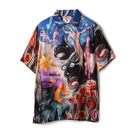 ENDLESS JOYアーティスト「STEVIE ANDERSON」による作品をシャツというキャンバスにデザインした一枚です。太陽や物の怪などのモチーフを枠にとらわれない色使いで表現したデザイン。肌触りの良いシルク100%の素材は一度、袖を通すとクセになります。ジャストフィットのシルエットなので、ボトムスを選ばず着用して頂けます。スラックスやチノパンで合わせるとブランドイメージが伝わりやすくお勧めです。セットアップのインナーとして合わせるとこなれたコーディネートを味わう事が出来ます。ENDLESS JOY…バリ島より、知的なムード漂うボウリングシャツを発信するEndless Joy(エンドレス・ジョイ)。この上なく柔らかなシルクで仕立てられたリラックスシルエットのシャツに、インドネシアの神話にインスピレーションを得たオリジナルのアートワークがあしらわれています。創世神話に登場するヘビ神をはじめ、サイケデリックなジャングルを司る神々の姿を緻密に描いたシュルレアリスム的なモチーフにご注目ください。