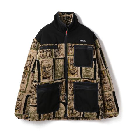 Napa by Martine Roseナイロンとフリースの切り返しが施されたミリタリーストリートなムードを漂わせる一着。民族的なグラフィックモチーフがボディ全体に施され、コーディネートの主役を飾るインパクトたっぷりなアイテムです。オーバーなサイジングのボックスシルエットで、肉厚なニットやパーカー着合わせても着ぶくれせずお使い頂けます。フロントジップ、スタンドカラー、裏地は中綿仕上げで寒さからもしっかり保護してくれます。Napa by Martine Rose(ナパ・バイ・マーティンローズ)は、イタリアのストリートブランドNapapijr(ナパピリ)とMartine Rose(マーティン・ローズ)のコラボレーションで誕生したブランド。90年代のハイエンドファッションとストリートウェアからインスピレーションを受けたラグジュアリーなデザインが特徴です。