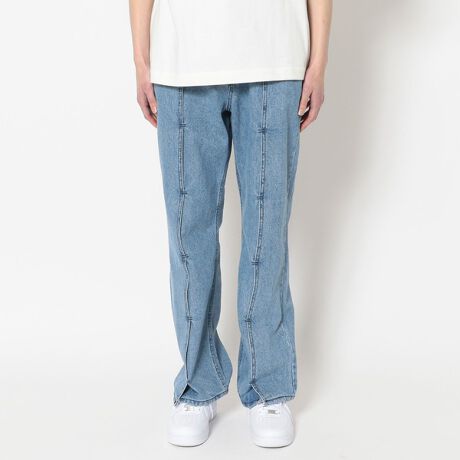 OYセンターにレイヤードタックが施されたユニークなデザインが目を引くデニムパンツ。裾部分にスリットが入っておりスタイルアップ効果抜群◎ヴィンテージライクな淡いカラーリングが春らしく、トップスの着合わせに迷わないシンプルなデザインでデイリーユースアイテムとして活躍すること間違いなしの一本です。Model:H184cm 着用サイズ:F日韓のストリートで人気沸騰中のOY。2016年韓国にて代表兼デザイナーであるキム・ビョンジョン氏が設立したブランド。設立1年目からストリートにて爆発的な人気を集め、多数の歌手やインフルエンサーが着用するなどアジアを中心に注目される有名ブランドに成長。ヒットのきっかけとなったリングモチーフや、他ブランドと差別化されたモードストリートな雰囲気の漂うアイテムを多数展開。
