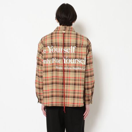 MINDSEEKERマインドシーカーによるオリジナルロゴグラフィックでスローガンをバックサイドへ大胆に配したチェックシャツ。明るい配色で羽織るだけで春夏の気分へと変貌します。お馴染みの革紐は今シーズン「赤」ですのでいつも以上に映える仕上がりです。フロントにもロゴや頭文字をプリントし寂しくないデザインです。肩が落ちるドロップショルダー、身幅にゆとりを持たせたリラックスフィット。スキニー、デニム、ワイドパンツ、カーゴパンツ、チノパンとボトムスを選ばない凡庸性の高い一枚です。MINDSEEKER前身となる<All I Do Syndicate>を経て、2016年、新たにハイエンド指向のブランド<mindseeker>を設立。デザインから生産に至るまで、全ての工程はブランドの拠点となるアメリカ ロサンゼルスで行われる。また、アメリカや日本において、多方面で活躍中の若手アーティストとのコネクションが強いのが特徴。 その背景は、ブランド起源となるストリートカルチャーとともに、独自の発信や魅せ方を可能としている。