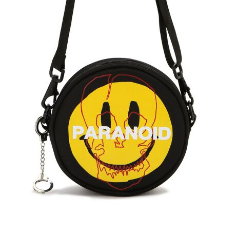 AZS TOKYOデザイナーのオリジナルグラフィックとフォントをシルクスクリーンプリントで表現したショルダーバッグ。丸形のミニサイズながらも財布や携帯などを収納できるのでタウンユースでも活用できる絶妙なサイズ感。オリジナルの手錠チャームがついていたりとアクセサリー感覚でもお使いいただけます。ベルト部分のサイズ調整も可能なのでユニセックスでご使用して頂けます。AZSTOKYO・・・AZSTOKYO IS AN TOKYO−BASED FASHION LABEL BY DESIGNER、 CROSS. ESTABLISHED IN 2013、 CROSS FIRST STARTED AS A CAP BRAND.