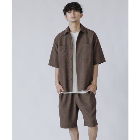 無地 CPOシャツ & ハーフパンツ & 巾着 セットアップ 3点セット