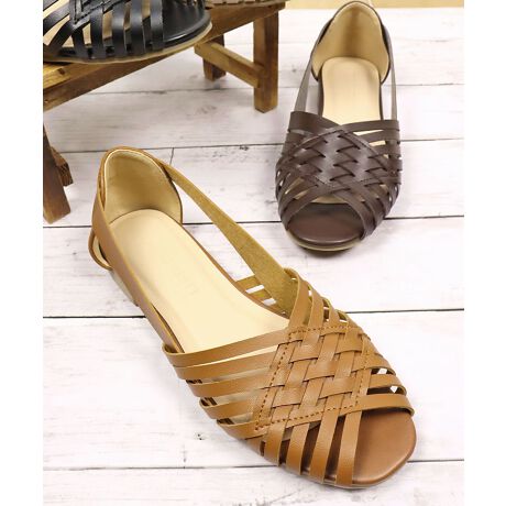 ナチュラルな雰囲気漂う大人のリラックススタイル♪トレンドの編み込みデザインフラットサンダル♪