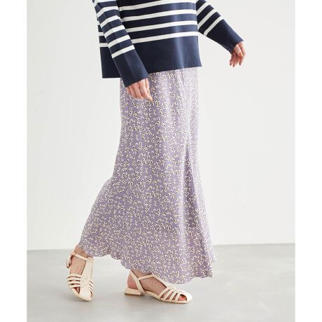 ・バイヤスカットで綺麗な落ち感を出した、フラワープリントのマーメイドスカート。