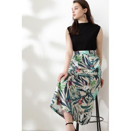[WEB限定]ボタニカルリーフプリントフレアスカート