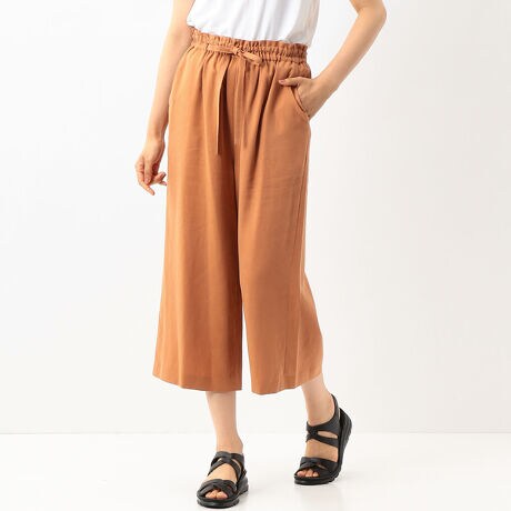 麻とリヨセル(再生繊維)のさらりとやわらかな天然素材な風合いが気持ちいいリラックスパンツ。 ウエストがストリング&ゴム仕様なため、履き心地は抜群。 ギャザーが入っており、ゆとりもありますがだらしなく見えないようにシルエットにはこだわってお作りしています。 リラックス感ときちんとさを兼ね備えた万能パンツです。 クロップドタイプでくるぶしあたりの短め丈となっています。