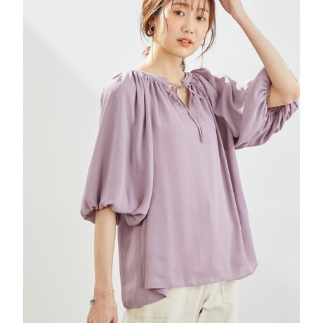 ・ふんわりパフスリーブと、バックネックのリボンがマッチしたプルオーバーブラウス。