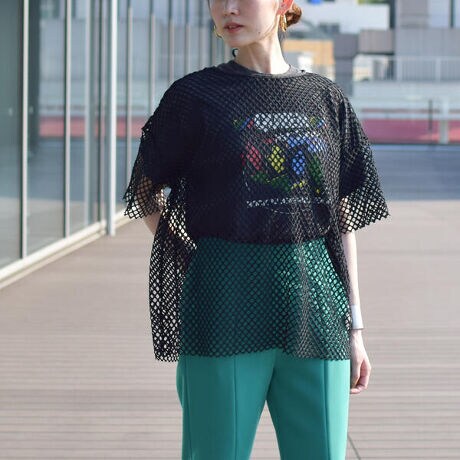 トレンドムードを盛り上げるシンプルで合わせやすいメッシュTシャツ。インナーによって雰囲気を変えられる優秀なデザインとゆとりのあるリラックスシルエット。