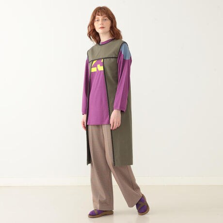 ユーロヴィンテージのエプロンワンピースをイメージソースに作られたアイテム。前後で着回しができるのでレイヤードを楽しんだり、Tシャツと合わせたりとコーディネートが楽しいひと品です。