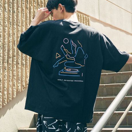 東京は代々木上原のレコードブティック<Adult Oriented Records>とのスペシャルコラボにより、AORオリジナルのグラフィック・デザインをインパクトのあるバックプリントで表現しました。