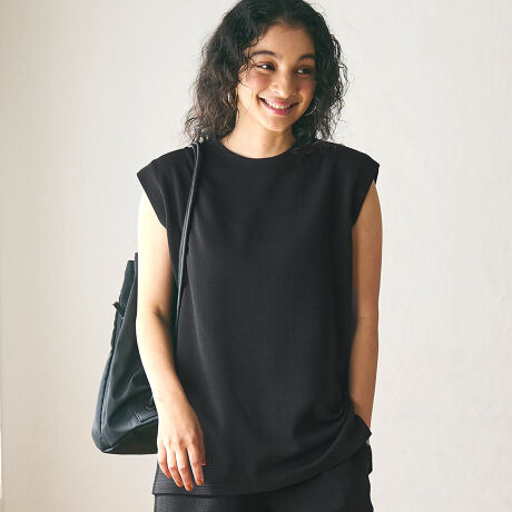 肩にかかるくらいのノースリーブデザインで華奢見えに