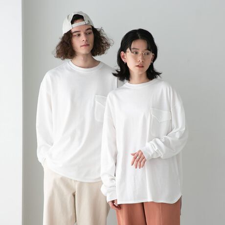 FEELING MADE ソフトタッチインレイ クルーネック ロングスリーブ Tシャツ