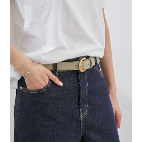 ・夏らしい爽やかなルックへと導く、バンブーバックルのヌバックベルト。