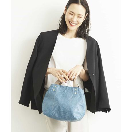 ペーパーライクな表生地に、フェイクレザーの持ち手を合わせたおしゃれな組み合わせがこなれた雰囲気を演出します。