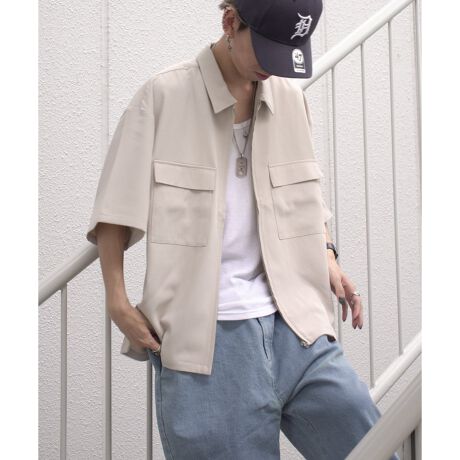 半袖のジップアップは、パーカーはあってもジャケットはほとんど見かけません。さらっとしたしなやかな生地ですが、軽くはなく少し重さがあります。シンプルで上品なデザインなので、仕事中にも羽織れて良いと思います。