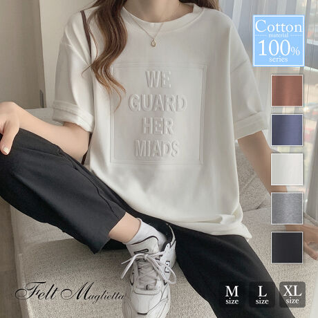エンボス加工ロゴTee 立体ロゴ 英字 フロントロゴ カジュアルTシャツ