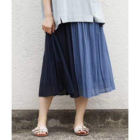 はくだけでオシャレ度がUPするトレンドのアシンメトリーデザインで、左右の色を変えた同色バイカラーのロングスカートです。