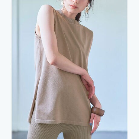 こなれ感のあるスタイリングをメイクするサイドスリットニットトップス。