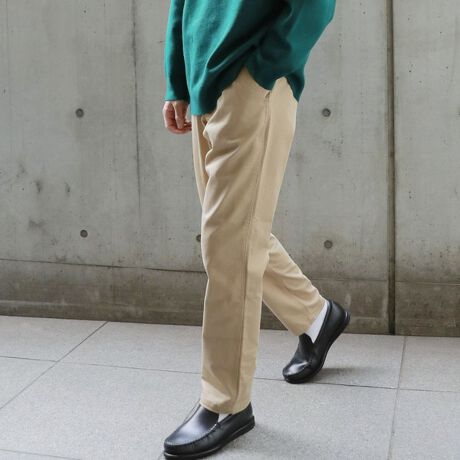 ジャケット合わせでビジネスシーンにも、カットソーやニット合わせでカジュアルにも汎用性あるきれいめな美脚ラインを意識したテーパードチノパンとなっています!