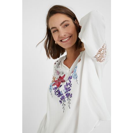 後ろ身ごろに肩甲骨のところまでレースが入って入て、見えても良いアンダーウエアが必要だと思いましたが、気にされない方もいるのでしょう。私は色を合わせてランニングを着ています。着てみると花の模様がウエストちょっと上まであって、画像より華やかです。パンツでもロングスカートでもよいので着回しが効きます。