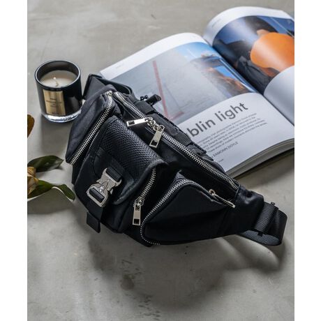 シックなブラックのバッグに黒白のドローコードと高見えするシルバーパーツを使用することでシンプルでありながら、存在感抜群のボディバッグに仕上げました!