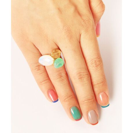 ワイスチャームの【重ね付けリングセット】ムーンストーン×クリソプレーズ×シトリンリング。