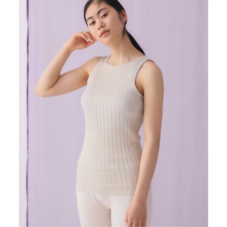 超長綿のスーピマコットン100%で編み立てたニットタンク。