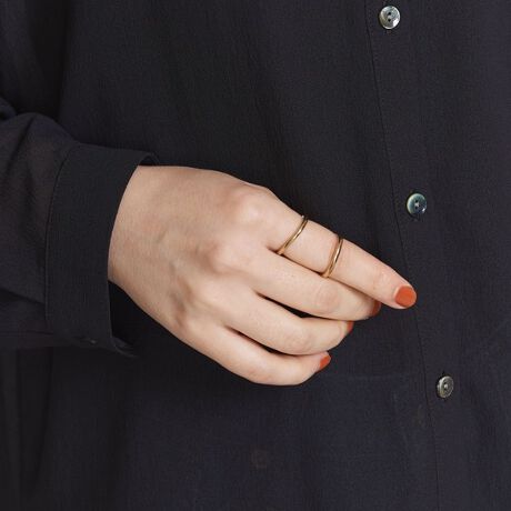 着ける向きによってラインの出方が変わるユニークなデザインが魅力な<BYOKA>のリング。