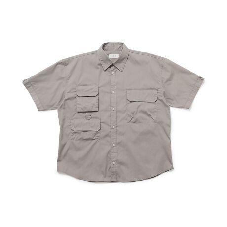 もはやトレンドスタイリングに欠かせないフィッシングベストをデザインベースに作られたシャツです。重ね着しなくてもアウトドアなスタイリングを楽しむことができ、シンプルになりがちな真夏のコーディネートの幅を広げます。ポケットにはスマートフォンやカードケース、電子タバコの入る大きさのポケットが3つ付き、実用性も兼ね備えたデザインです。