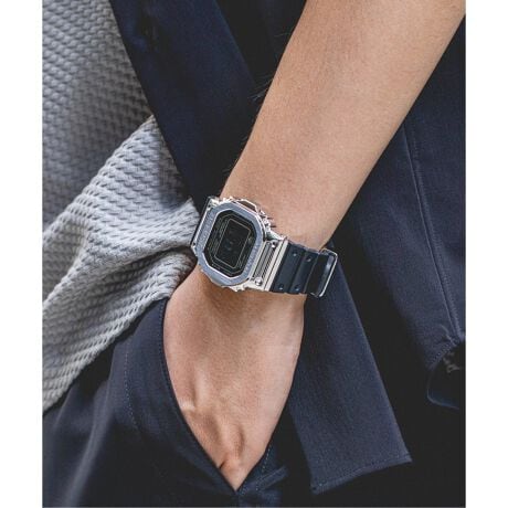 1983年に誕生したG-SHOCK初号機DW-5000C。その象徴であるスクエアデザインはそのままにフルメタル化し、スマートフォンリンクをはじめとした先進機能を搭載したGMW-B5000シリーズ。